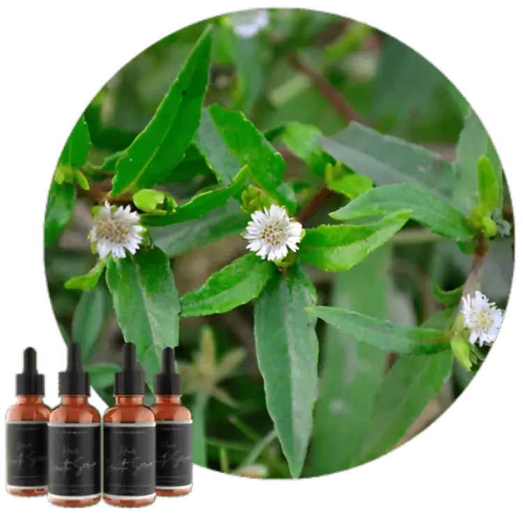 Castor Oil, Soybean, Grape Seed Oil, Olive Oil, Chili Oil, Argan Oil, Tea Tree, Amla, Mustard seed, Basil, Sesame Seed, Sage, Thyme, Aloe, Garlic seed, Onion seed, Pygeum, Biotin, Ginkgo Biloba, Black Tea, Neem, Aritha, Calendula, Chamomile, Dandelion, Lemongrass, Saw Palmetto, Ginseng, Fenugreek, Ginger Root, Gotu Kola, Hibiscus, Lavender, Horsetail